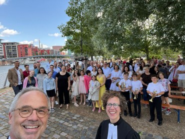 Musikalisch unterstützt wurden wir von „Blech gehabt“, dem Bläsertrio der Frankfurter Bläserschule, Gerald Ssebudde am Klavier und dem ESG-Chor. Auch die Kulinarik kam dank dem Team von Martha’s Finest nicht zu kurz. Und so war durch tolles Teamwork der haupt- und ehrenamtlichen Helfer*innen ein wunderbares Tauffest möglich.